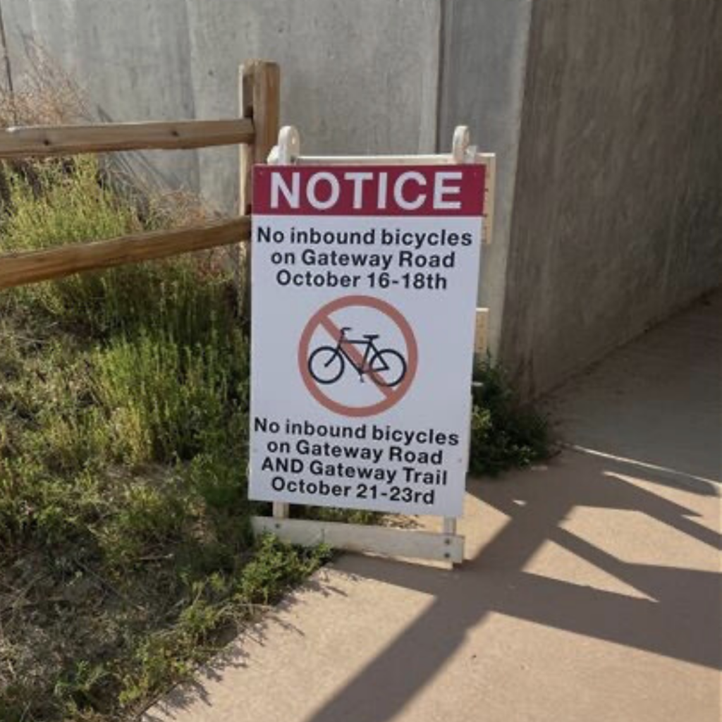 - Gateway Trail closed to bicyclists during this time (only open for walkers).