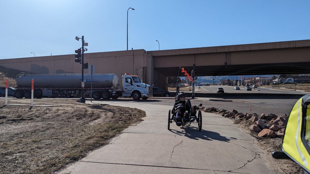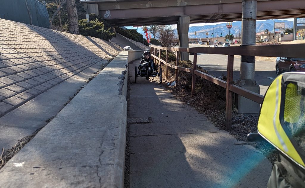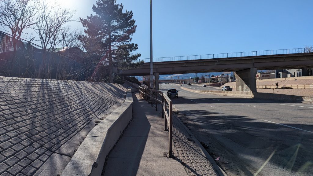 - Narrow 3ft sidewalk directly next to traffic – West of I25