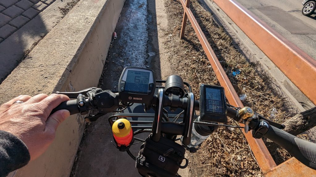 - Narrow 3ft sidewalk directly next to traffic – East of I25 at Pike View Reservoir